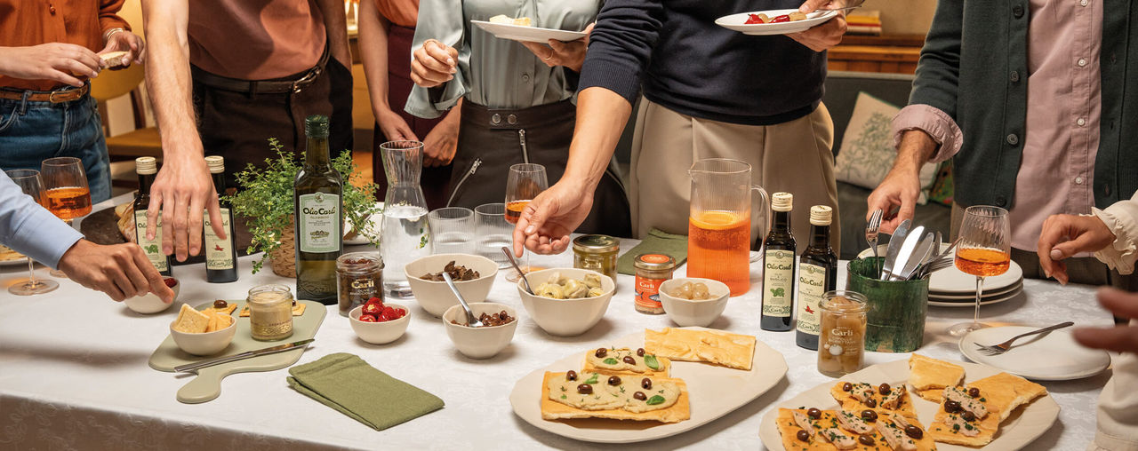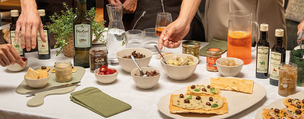 250 g di farina 00, 40 g di zucchero semolato, 1 uovo, 50 ml di latte, 7 g di Olio di Oliva Carli Tradizionale per l’impasto, la scorza di ¼ di arancia, un pizzico di sale, 150 g di Crema Nocciole e Cacao, Olio di Oliva Carli Tradizionale per friggere, zucchero a velo