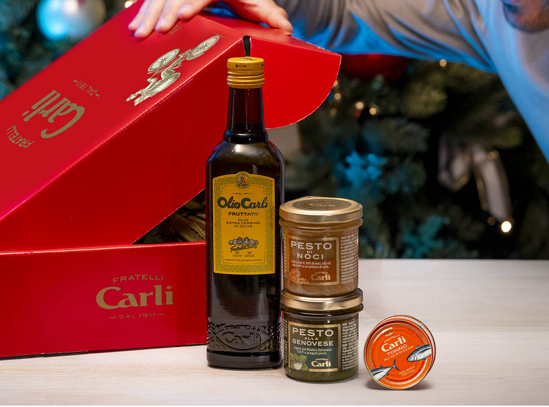 Un cesto che racchiude i sapori autentici della tradizione: Pesti, Olive Taggiasche, Oli Evo pregiati e Tonno bianco. Pensato per chi ama condividere la cucina e trasformare ogni festa in un ricordo speciale, è la strenna natalizia elegante e ricercata che conquista con gusto e autenticità.
